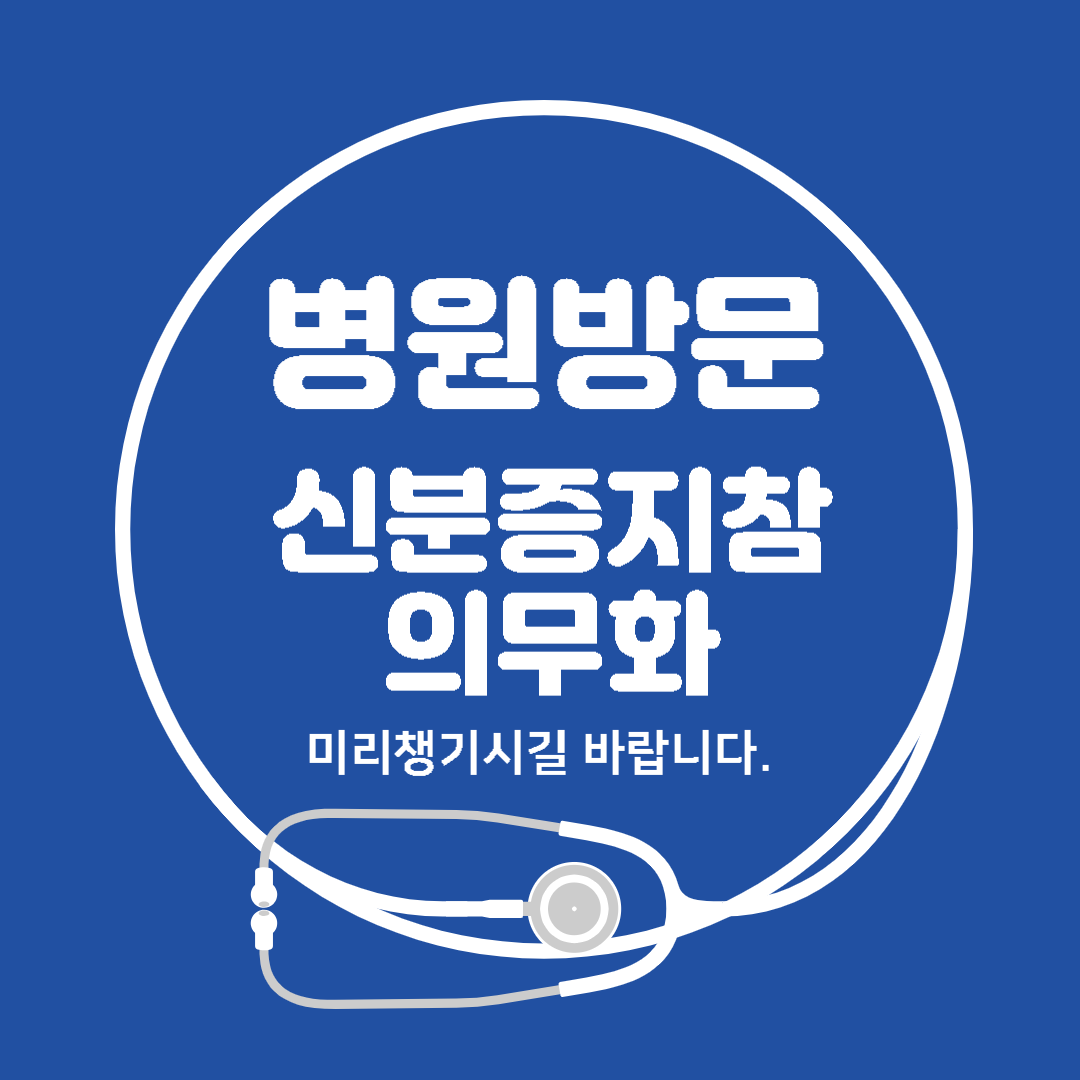 이번달 5월 20일부터 병의원 또는 약국등 요양기관에서 신분증으로 본인여부 확인,건강보험 자격여부를 확인하는 제도를 시행합니다.병의원이나 약국 등 요양기관에서 신분증 등으로 환자 본인 여부와 건강보험 자격 여부를 확인하는 제도가 시행된다. 본인 확인이 되지 않으면 건강보험을 적용받지 못해 비용 전액을 환자가 부담할 수 있어 꼭 확인 하시고 신분등 챙겨가시길 바랍니다.